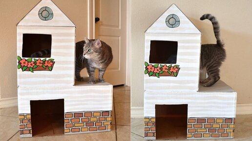 Как сделать домик для кошки из картона