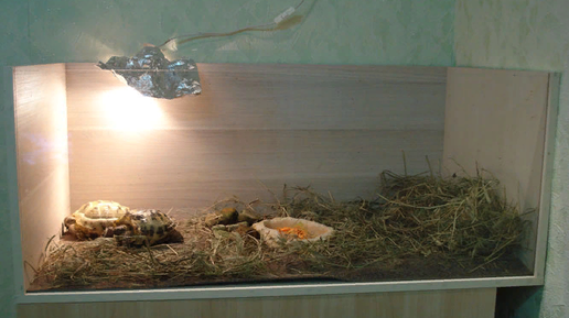 Приветствую вас, мои дорогие читатели! В этой статье я расскажу как можно на скорую руку собрать террариум из подручных материалов и инструментов. Такой террариум подойдет для проживания даже взрослой черепахи, игуаны и других сухопутных животных. Все зависит от размера, который вы желаете сделать. Первым делом нарисуйте от руки приблизительный макет коробки. Не обязательно иметь навыки черчения, это может быть обычная схема нарисованная от руки. Что понадобится: Собираем коробку Переносим все размеры с чертежа на кусок фанеры и выпиливаем все его части с помощью пилы или электро-лобзика...