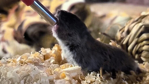 Перед тем как заводить этих зверьков, я искала о них информацию, которой оказалось не так много, как хотелось бы. В одном из немногих видео говорилось, что слепушонкам достаточно жидкости из овощей и поилку им ставить не нужно, либо они вовсе не пьют. И я задалась вопросом: "А точно ли не нужно?". И решила все же купить поилку. Пить они начали не сразу. Наверное еще не понимали что это. Я им показывала первые пару дней, что есть доступ к воде. Их мордочкой аккуратно двигала шарик на поилке, и тогда капелька воды оказывалась на слепушонке...
