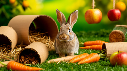 Кролики — не просто пушистые комочки, а активные и любопытные животные! Особенно летом, когда так много новых запахов и пространства. Игры помогают им развиваться, сбрасывать стресс и поддерживать хорошее настроение. 🌿 Туннели и домики