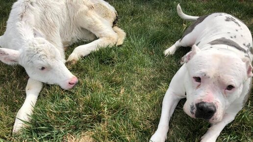 Питбуль и слепой теленок: они нечаянно подружились