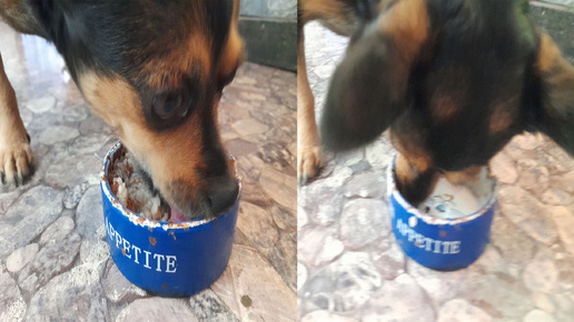 Раздача фирменной каши для собак/Щенки разбирают игрушки