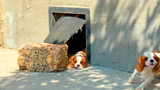 Недавно в наш питомник приехали щенки породы кавалер кинг чарльз спаниель. Они родились у совладельца из Краснодара. У этого же совладельца родилась Леди, которая и является матерью щенков. Отец щенков — чемпион выставок, также проживает в их питомнике. Обе собаки являются достойными представителями своей породы. Все щенки сильно похожи на Леди, когда она была в том же возрасте. Их сложно отличить друг от друга, если не вглядываться в детали вроде узора на спинке или телосложения. После недолгого осмотра мы сразу разместили щенков в их новом вольере с выходом на улицу...