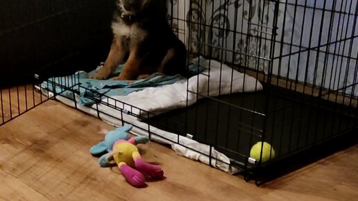 Сразу же - на следующий день, после появления щенка, нами была куплена клетка номер 6, для безопасного пребывания собаки в квартире , когда нас нет. Клетка всегда открыта, сначала мы кормили собаку в ней, положили в неё её спальное место, и в, течении недели Герда, привыкла к ней и стала воспринимать клетку как свой дом, своё убежище, и место где она может спокойно отдохнуть. Поверьте это очень нужная вещь...