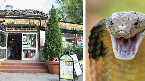 Самая большая ядовитая змея в мире на свободе. Стокгольмский зоопарк Скансен пришлось эвакуировать из-за того, что из его террариума сбежала королевская кобра. Во второй половине субботы Аквариума Скансена в парке Скансен на Юргордене в Стокгольме пришлось срочно эвакуировать. Причина в том, что королевская кобра длиной два с половиной метра сбежала из своего террариума. По словам свидетелей, опасности для посетителей не было. Змея выбралась из клетки и пробралась внутрь подвесного потолка (на нижнем фото: момент побега)...