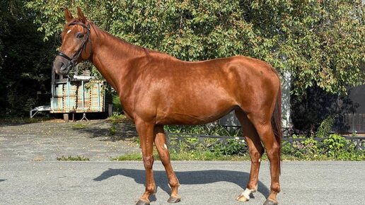 2021 г.р., рост ~170 см На тренировке прыгает до 90 см, подойдет как в выездку, так и в конкур, работается в оба направления (уступка, плечо, контр-галоп, сырая менка). Работается на разных площадках, ходит в лес. Ласковая, контактная, можно после выходного сесть и поехать. Подойдет юноше, под хорошо сидящего ребенка, но с учетом что будет берейтор...