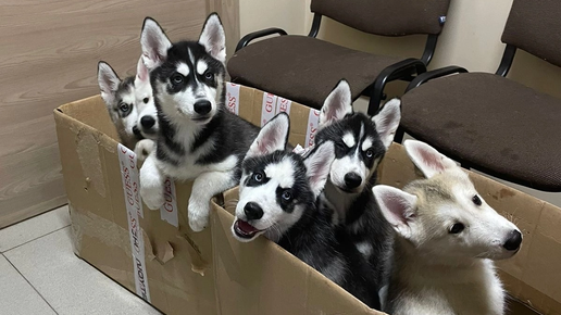 Неожиданный гость во время похода к ветеринару на вторую прививку. Реакция щенка Хаски