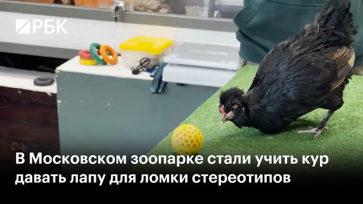 Курица из Московского зоопарка выполняет трюк с мячиком | Фото: Пресс-служба Московского зоопарка Они были приручены человеком около 3,5 тысячи лет назад. За это время их имя стало нарицательным символом глупости, а выражение «мокрая курица» прочно вошло в лексикон. Но теперь ситуация меняется. Московский зоопарк решил сломить устоявшиеся стереотипы и приступил к дрессуре кур. Пернатых тренируют выполнять команды, открывать задвижки, следовать за мишенью, выбирать кольцо определённого цвета и даже давать лапу...