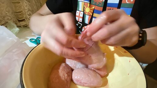 Доброго времени суток господа. Если вы никогда не пробовали шашлык из яиц Барана. Он немного специфический на вкус, но я уверен, что многим он понравится. Поехали! Берём колокольчики и чистим от верхней женской пленки. Это самый трудный и отнимающий много времени процесс. Дальше нарезаем яйца на кусочки, которые вам удобно будет нанизывать на шампуры и жарить на мангале...