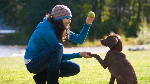 • Команды "сидеть" и "лежать" - обучение с помощью лакомства или игрушки.