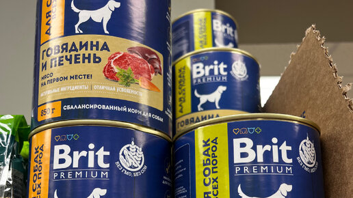 Данные консервы частенько можно встретить на полках Пятёрочки, плюс они их доставляют на дом курьером с помощью известных сервисов доставки, раньше не доставляли. Brit вполне себе не плохие мясные консервы, наши собаки их любят. Скажу так, что на вашего любимого питомца при его весе 20-30кг одной такой баночки, как на фотографии ниже хватит на 3-4 приема пищи. С учетом гарнира: рис, гречка, овсянка. Как в нашем случае. Аллергических реакций никаких не наблюдалось на данный корм. Ценник за такой корм (~200р) весьма приятный, а еще приятней, когда он идет со скидкой...