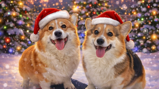 Новогоднее поздравление от сестричек корги! 🐶🎄🎊