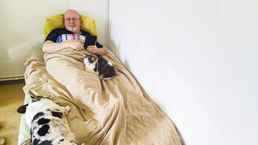 Собака Тильда живет у нас уже 5 месяцев. Совсем стала своя, любимая. Только кошки все еще нос воротят. Но делать нечего, приходится им как-то прилаживаться. В доме уже установился понятный обеим сторонам порядок и мирное сосуществование. Могут и совсем рядом полежать. Но только до первого резкого движения или энергичного взмаха собачьего хвоста. А потом сразу врассыпную. Однако, если я попадаю в их компанию, тогда все идет мирно, могут долго валяться в ногах или на ногах, это уж как им будет удобно...