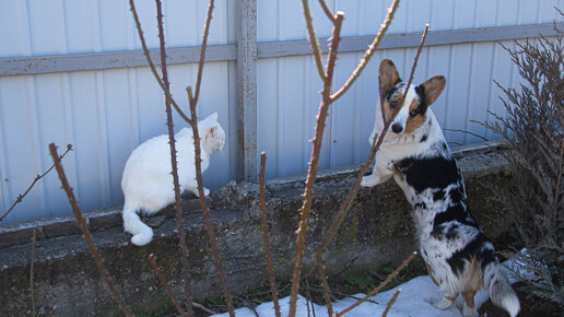 Полгода назад у нас появилась собака - шестимесячная корги-кардиган Тильда. Три наши кошки приняли новенькую в штыки. И шипели на нее, и рычали, и драли своими острыми как бритва когтями. А собачка мирная, компанейская, ей даже с этими злыднями дружить хочется. Но чем больше она радостно размахивает хвостом, тем суровей делаются наши матроны. Однако, мало по малу, все устаканилось. Кошки поняли, что собака тоже человек, имеет право на существование. Смирились. В доме вообще уже не обращают внимания на Тильду...