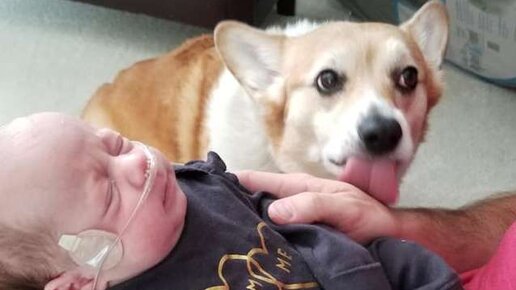 Корги влюбились в новорожденных младенцев и стали их нянчить