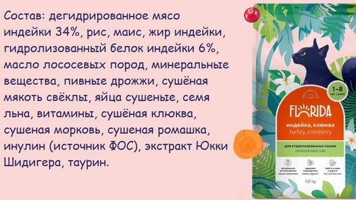 Быстрый разбор сухого корма Florida для стерилизованных кошек с индейкой и клюквой