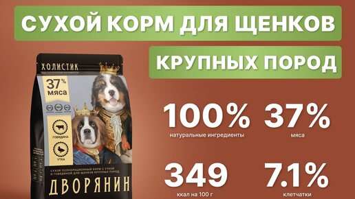 Скидка 10% на наш новый холистик корм «Дворянин» для щенков крупных пород с домашней птицей и говядиной на Ozon. Промокод: DZEN10 Щенок большой породы - это маленькое чудо, которое быстро растет и требует особой заботы. И одним из важнейших вопросов для заботливого хозяина становится выбор правильного корма. Что нужно большому малышу? В первые месяцы жизни щенки получают иммунитет от материнского молока. Однако им нужно время, чтобы сформировать свою собственную иммунную систему. Корм для щенков содержит витамины и антиоксиданты, которые помогают укрепить иммунитет...
