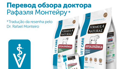 Перевод экспертного обзора доктора Рафаэля Монтейру: гипоаллергенный ветеринарный корм Formula Natural для собак. Автор: доктор Рафаэл Монтейру, ветеринарный врач, Салто-де-Пирапора, Бразилия Как ветеринар, практикующий в регионе с высокой влажностью, аллергенной флорой, в связи с малым экологическим загрязнением и всё более частыми случаями пищевой непереносимости у собак, я давно обратил внимание на необходимость гипоаллергенных рационов, созданных не просто "по рецепту", а с учётом клинической действительности и физиологии животного...