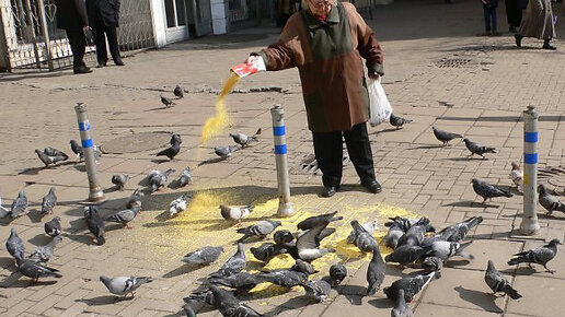 Мы с детишками часто кормим уточек в пруду батоном, и белочек в парке. Нам просто нравится это занятие. Но тут я стал замечать, что одна бабушка, живущая в нашем доме, ежедневно высыпает на люк по целой упаковке пшена! Высыпет крупу, и смотрит, пока птицы всё пшено не склюют. Мне стало интересно, зачем она подкармливает голубей, неужели ей эта процедура приносит удовольствие. Подошёл к ней, и говорю: "Бабушка, зачем вы кормите голубей? Они же - источник вирусных заболеваний и бактериальных инфекций...