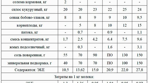 Рационы кормления для коров