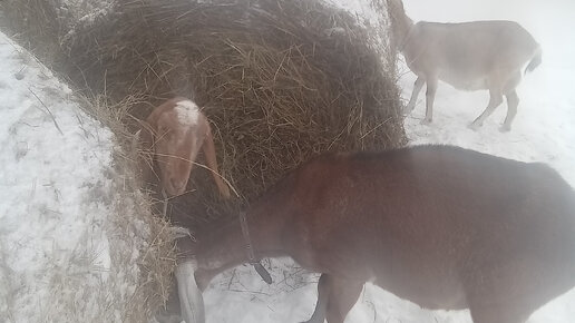Приветствую Вас на моём канале. Третий день снег,метель,козы выскакивают,часок поедят сено и быстрее домой в тепло.От ветра хитрые животные прячутся между рулонами-там их ветер не беспокоит. Потом продолжу про отравления, а то уже Вас утомила специфической информацией,да и Дзен может ограничить когда столько про симптомы и лечение. О кормлении коз во вторую половину беременности. Во вторую половину беременности уже становится хорошо видно увеличение живота у козы и можно предположить сколько будет козлят...