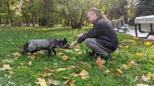 Часто на прогулках меня просят дать погладить лису, но я всегда отвечаю отказом. Почему? Лис гуляет, людей любит только на расстоянии. Желающих погладить каждую прогулку много. Максимум что я разрешаю - покормить с рук лакомствами, которые беру с собой (пусть и не всегда, они имеют свойство заканчиваться). И тут уже лис решает сам; хочет он общаться или нет...