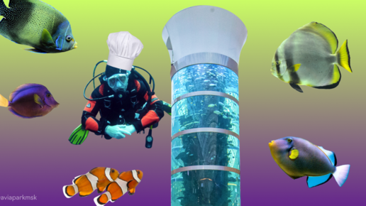 Обитатели Аквариума ежедневно съедают до 8 килограммов корма. Сначала водолазы кормят рыб, живущих наверху, потом спускаются к нижним. Но многие не понимают, почему нельзя просто насыпать сверху корм. Чтобы понять тонкости этого процесса, мы задали вопрос одному из аквалангистов АВИАПАРКА. Его зовут Юра и вот, что он говорит: «Дело в том, что в Аквариуме множество видов рыб. Есть те, кто живёт в стаях, есть — прирожденные одиночки. Какие-то рыбы почти всю жизнь проводят ближе ко дну, какие-то — чуть выше...
