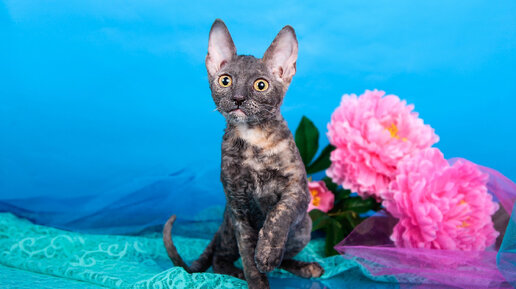 У нас поселился бараш! 🐑 Бывшедомашняя Гордения (Корниш-рекс), 7 мес. Приехала по причине аллергии и уже готова знакомиться с вами. 🧡 Мягкие волны на шубке, даже усы кудрявые — неземная красота! 🥹