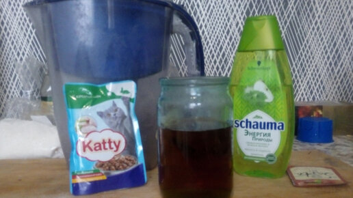 Что будет, если залить чаем Saito кошачий корм Katty и смешать с шампунем Шаума и налить в фильтр для воды, 9 фото