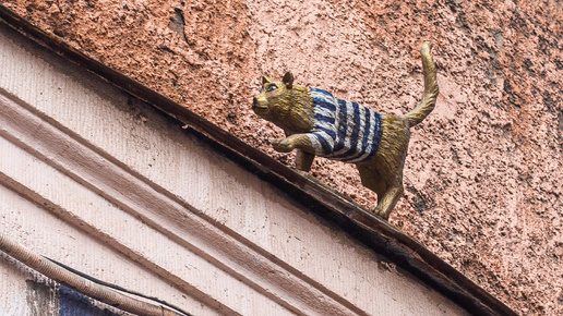 Скульптурные котики Петербурга: кошка Тиша Матроскина гуляет под охраной и награждена орденом Кота