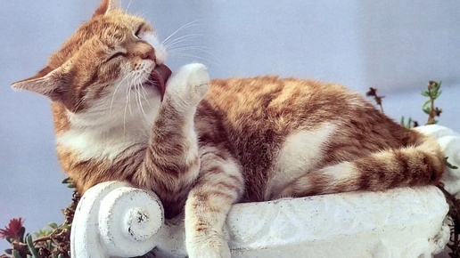 Что на самом деле происходит, когда кошка умывается?
