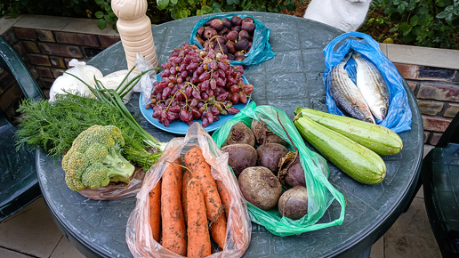 Фруктово-рыбный день или карп, кефаль, инжир, виноград
