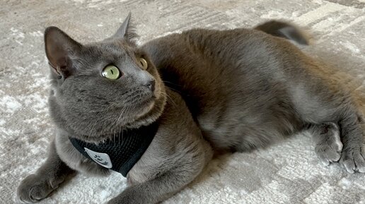 Вот всегда интересовало – почему кошка в шлейке сразу ложится