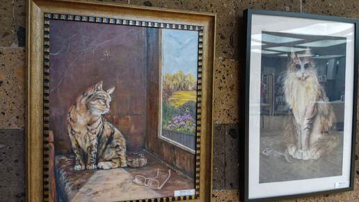 8 августа - Всемирный день котов и кошек, и я отметил праздник походом в Донскую публичную библиотеку. Там специально к этому Дню приурочена выставка книг, а также картин ростовской образцовой студии изобразительного искусства "Колорит", посвященных виновникам торжества, под названием "Котики гуляют по картинам". Дух выставки передает такая картина Суворовой М.Ю с изображением волшебного черного кота и пожеланием, что называется "Удачи!" Очень местноколоритная картина кисти Деминой Н.М. "Ростовский кот"...