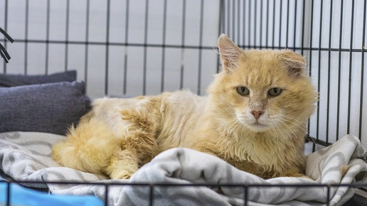 В Москве спасенный с улицы кот два месяца живет в клинике