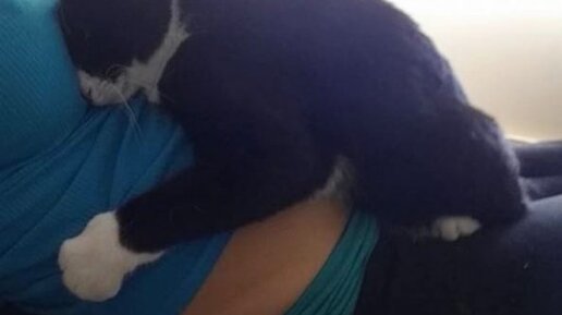 Кошечка всю беременность хозяйки не отходила от ее живота