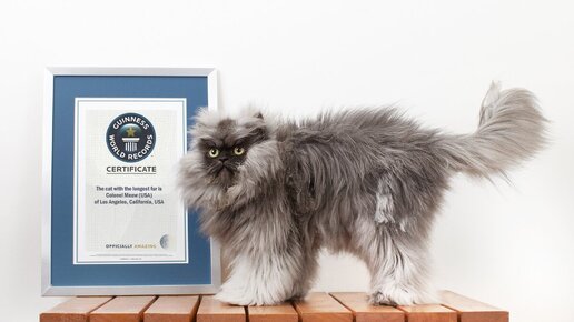 Одним из самых известных котиков нашего времени, и уж точно самым длинношерстным, был кот по кличке Полковник Мяу. Кот являлся помесью персидской и гималайской кошки, в октябре 2011-го года он был взят американкой Энн-Мари Эви из приюта, расположенного в Лос-Анджелесе. Полковник Мяу получил известность в первую очередь как обладатель длинной шерсти. В среднем ее длина составляла около 23 см, где-то больше, где-то меньше. Именно как самый длинношерстный кот в мире он и вошел в Книгу рекордов Гиннеса в 13-ом году...