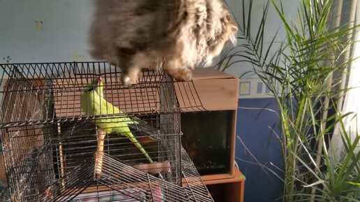 Что сделала кошка, когда не смогла схватить попугая в клетке