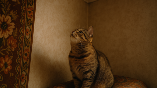 Кошка каждый вечер смотрит в одну и ту же точку на потолке. Я поднял голову — и передумал смеяться
