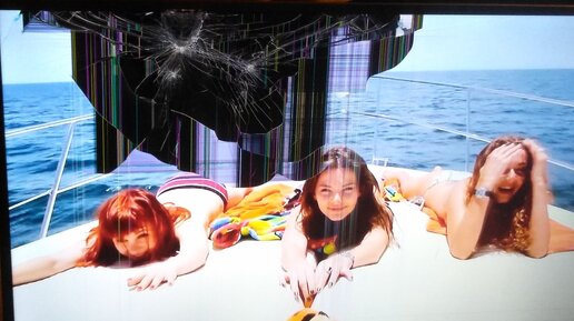 Вчера вечером смотрела фильм "Клуши" (лучше бы я его не смотрела) и кошка, чтобы привлечь к себе внимание, решила толкнуть телевизор сзади. Естественно, под ее мощными лапами он не устоял и грохнулся на пол...