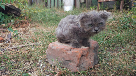 Грустный котенок выживал один в деревне, но все таки обрел дом