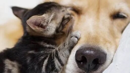 Выражение «как кошка с собакой» всегда ассоциируется с противостоянием и агрессией, а никак не с дружбой. Но в жизни случаются разные, порою - самые невероятные ситуации. Наша история станет очередным доказательством того, что животные умеют дружить. Собака Понзу – ласковый золотистый ретривер. Этот пёс очень добрый и спокойный. Всю свою жизнь он живет вместе с кошками, позволяя им нежиться на своей мягкой шерсти и играть с длинными ушами. Волонтеры всегда знали, что если есть брошенный котик, которому нужны забота и тепло – всегда можно положиться на этого чудесного хвостатого няня...