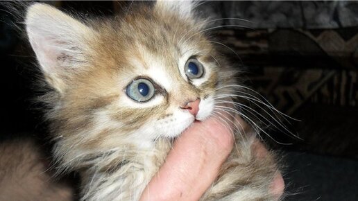 Бездомный котенок, которого тискали дети