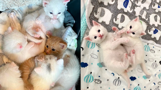 Пять котят засыпают на руках людей, когда понимают, что спасены