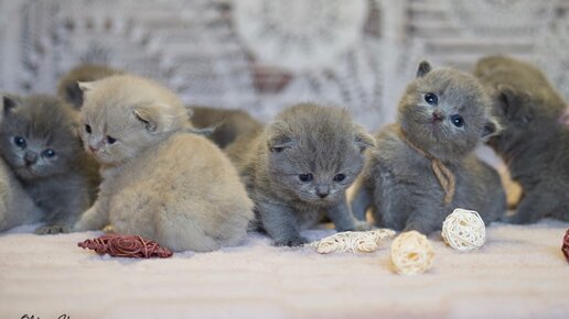 У нас маленькие британские котята - два котика и шесть кошечек. Они такие хорошенькие, что глаз не оторвать. Посмотрите сами.