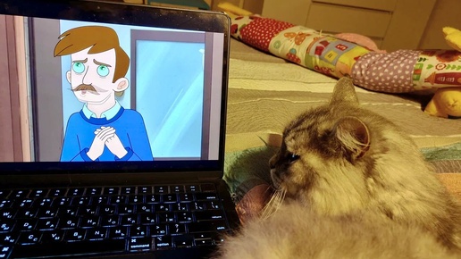 А с котом и Младшим мы смотрим мультики. Коту сняли швы, но на дачу еше рано, вот он и скучает в городе. Интересно, что пока он болел, кошичка не него не рычала и не быдлила, первым пускала к миске и вообще была заинька...