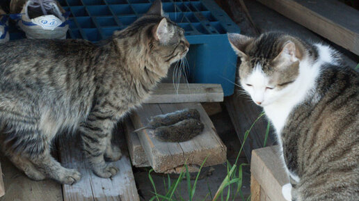 Вспомнив про котов, я поехал домой и забрал наших пушистиков на участок. Этому была несказанно рада жена, которая уже устала оттаскивать сына от котов. В команду котов входят: Тюсик – он самый старый, ему 13 лет (кот...