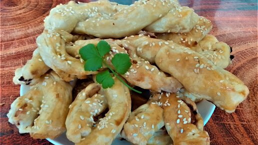 Косички из слоеного теста с курицей и картошкой