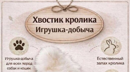 Натуральная игрушка-добыча «Хвостик кролика» для кошек и собак