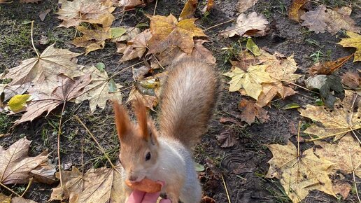 Неугомонная белка в гомельском парке в Беларуси.